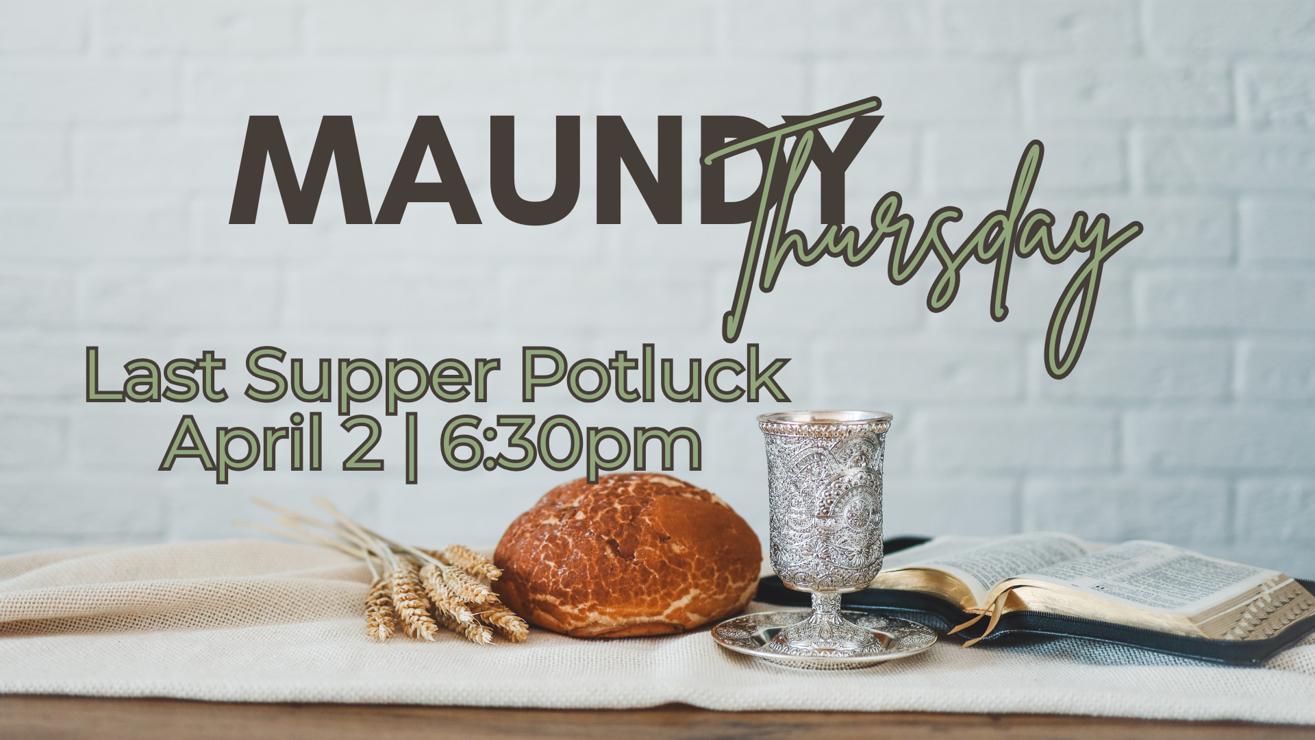 Join us for a last supper potluck followed by a time of worship and Holy Communion as we remember Jesus’ command that to “love one another.”