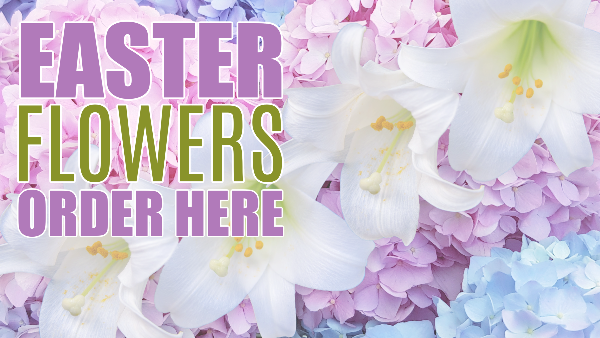 Lilies and hydrangeas will be displayed at the front of the Sanctuary on Easter Sunday. We will have white lilies as well as pink or blue hydrangeas. Choice of flowers is first come first served and flowers may be taken home after our Easter Worship Service (April 5).