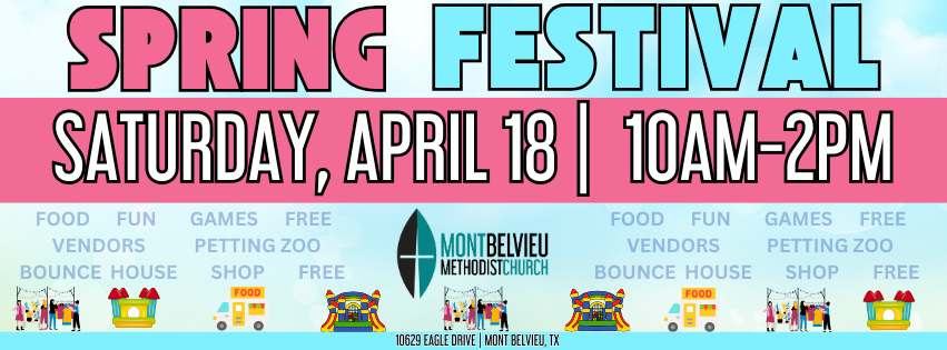Thank you for your interest in being a part of our fundraising efforts for our church as vendor at the 2026 Mont Belvieu Methodist Church Spring Market. We are looking forward to working with you to provide a fun and successful event for our community. In addition to our vendor event, we will also have ministry booths, music, inflatables, food trucks, photo opportunities, children's activities, games, and so much more!